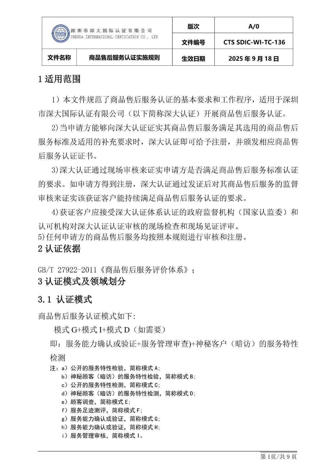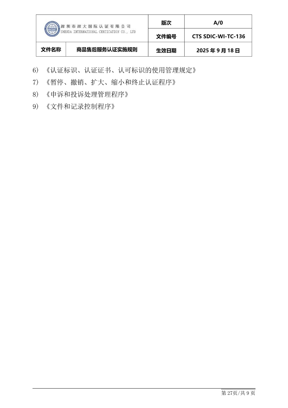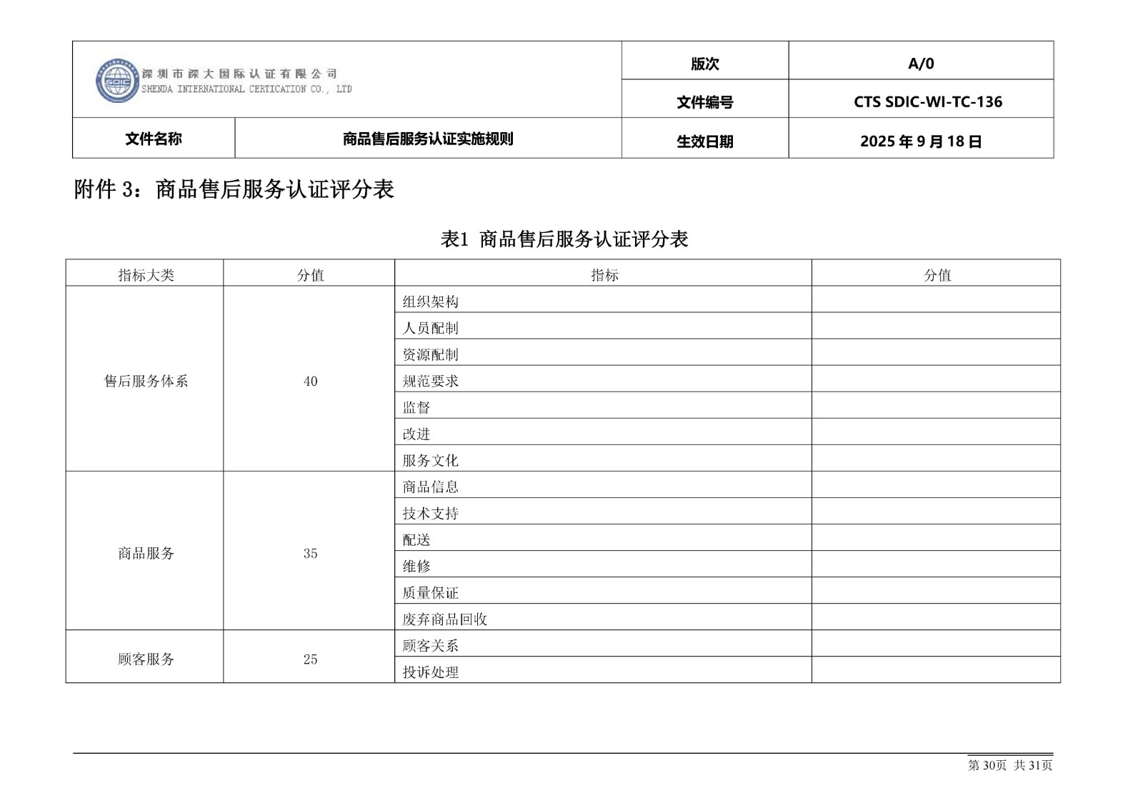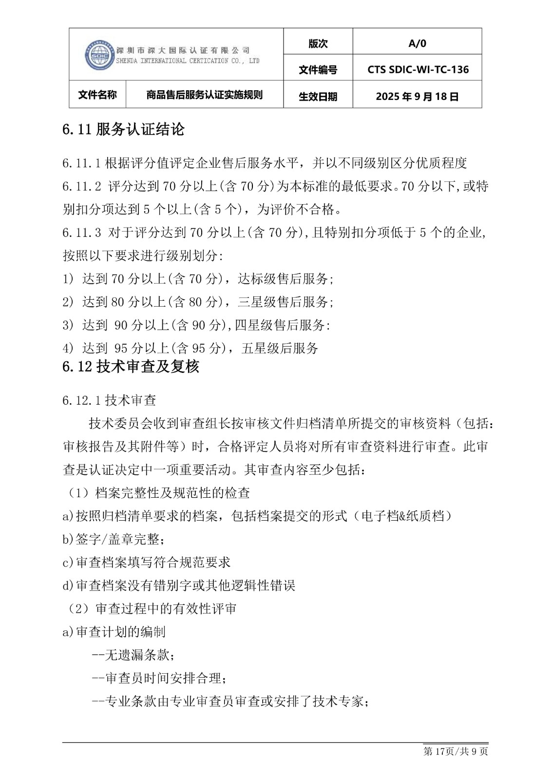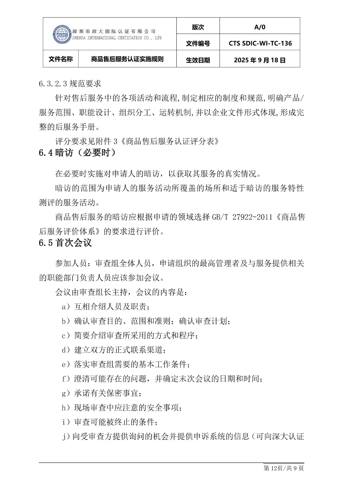 商品售后服务认证实施规则