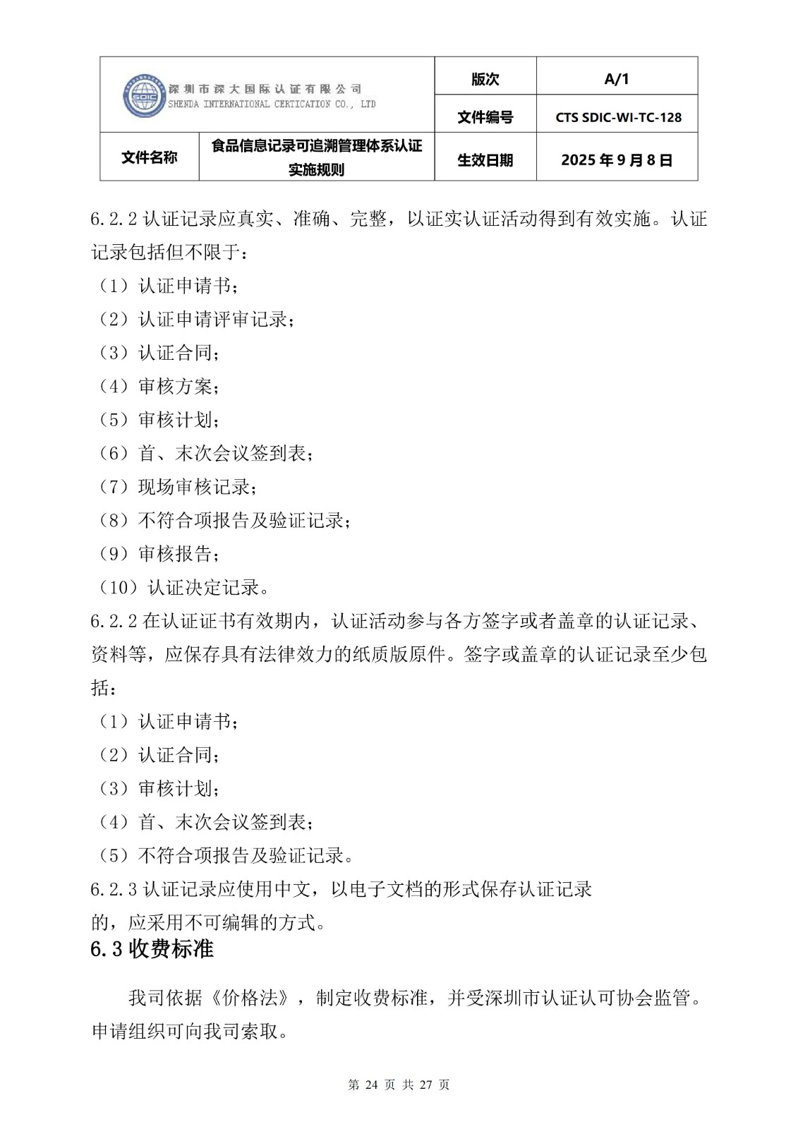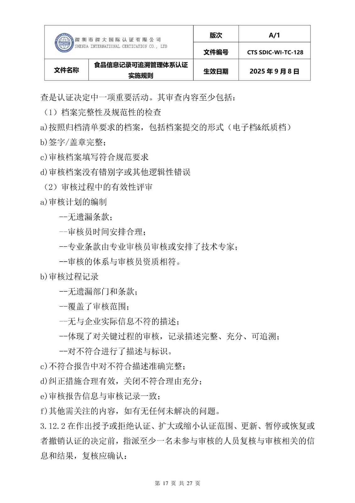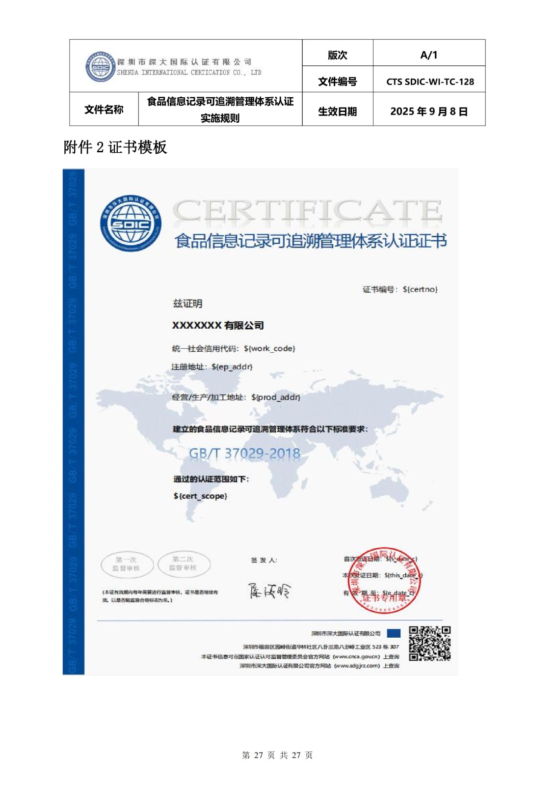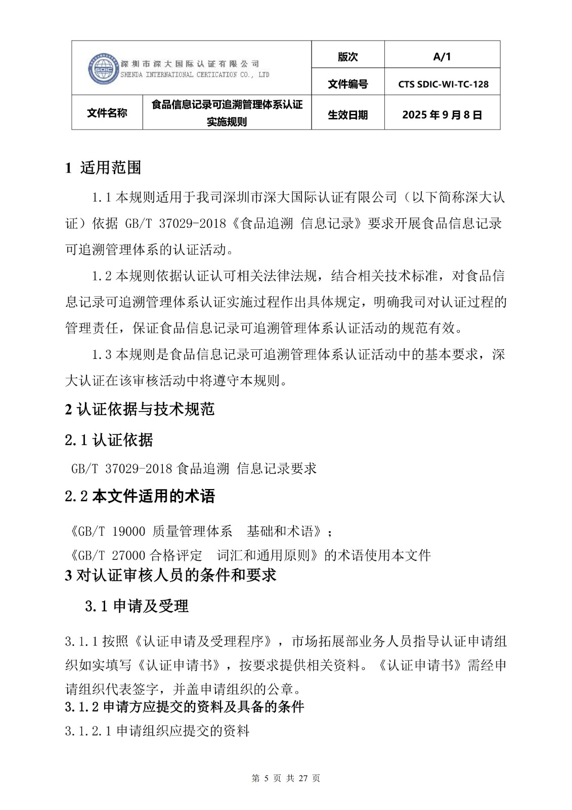 食品信息记录可追溯管理体系认证实施 规则