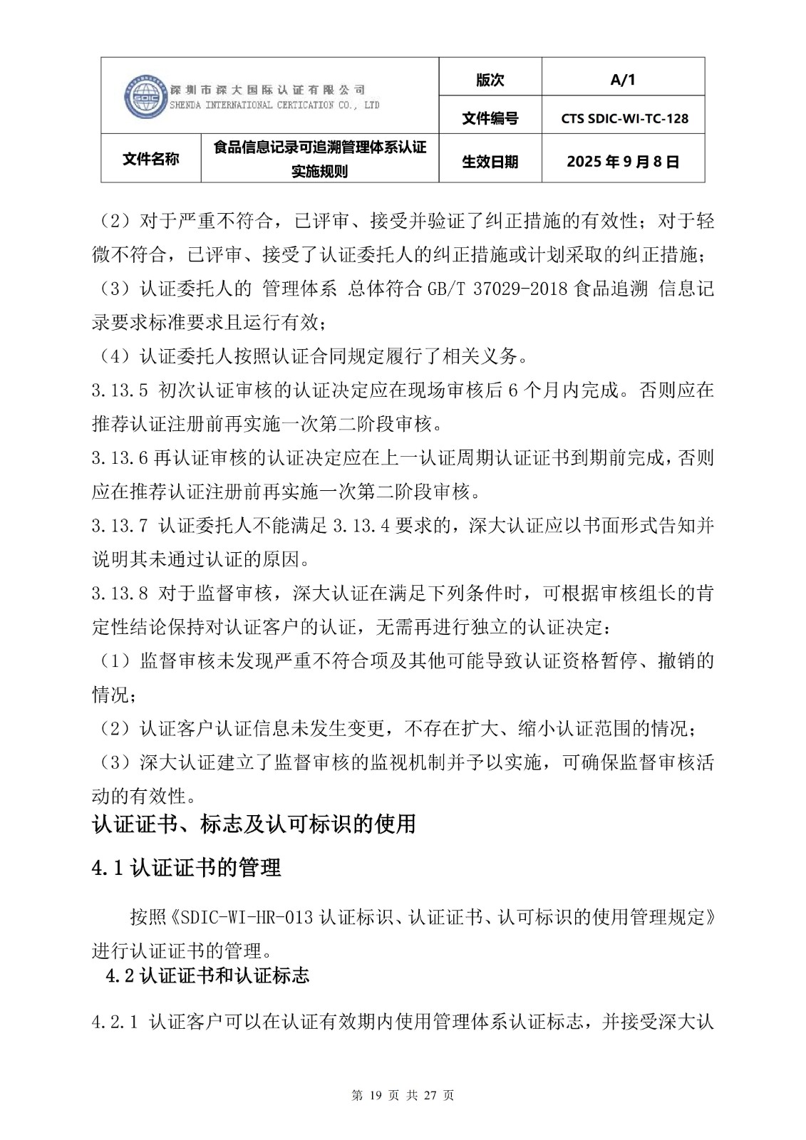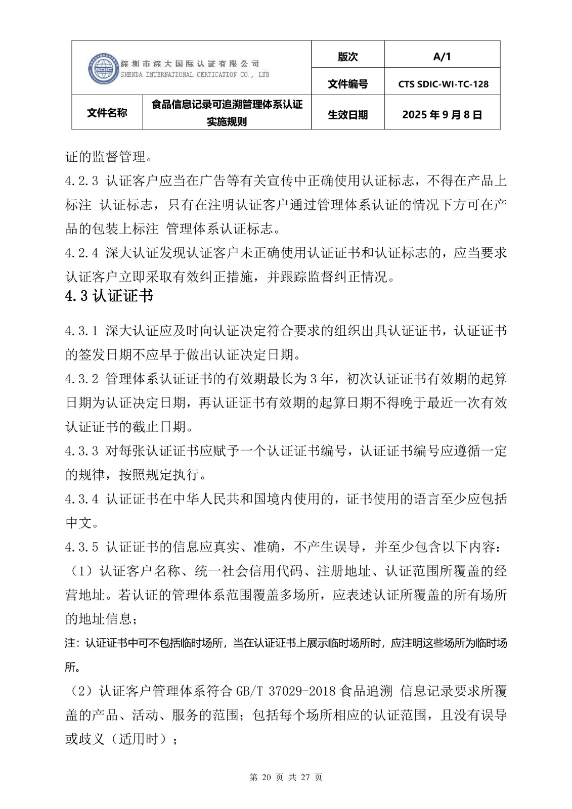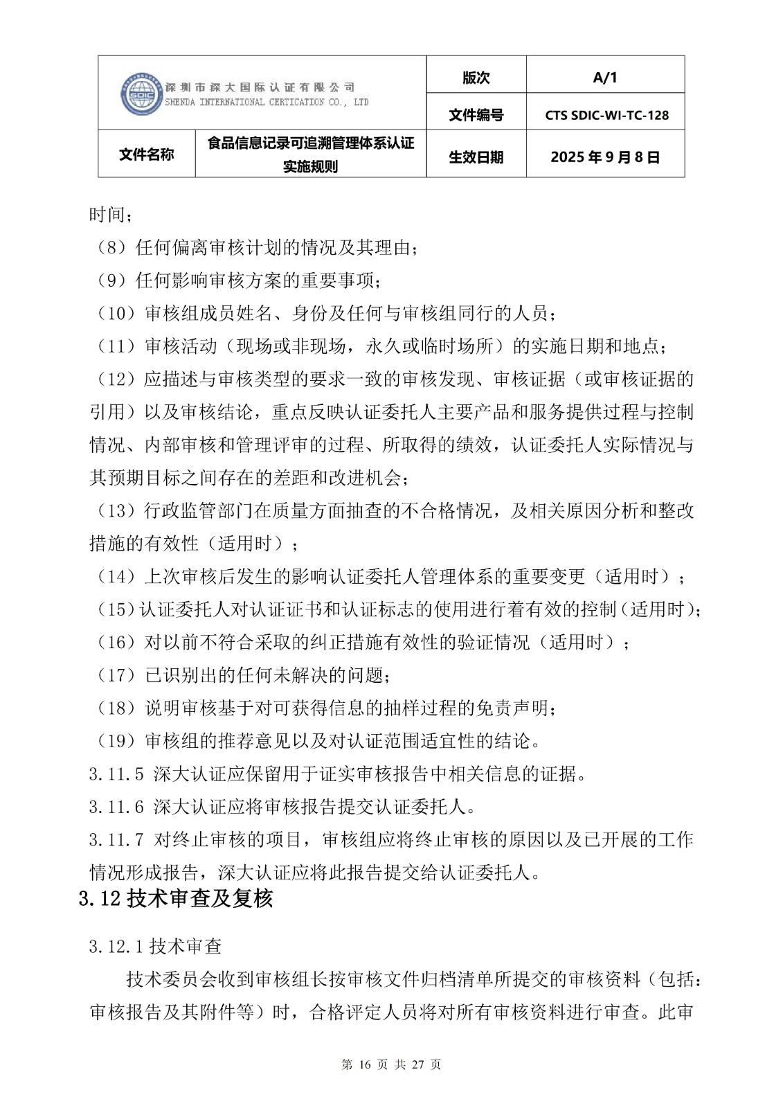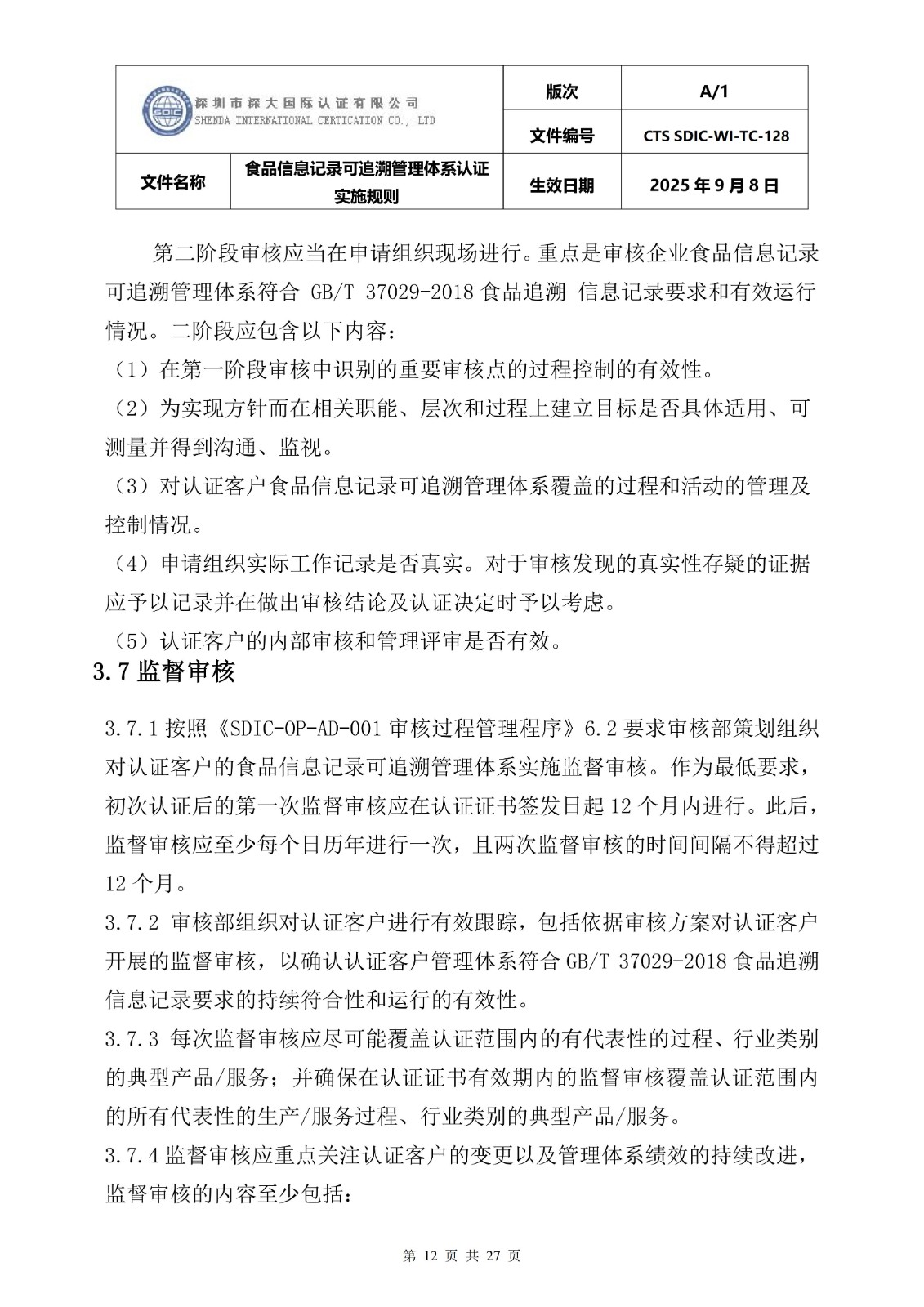 食品信息记录可追溯管理体系认证实施 规则