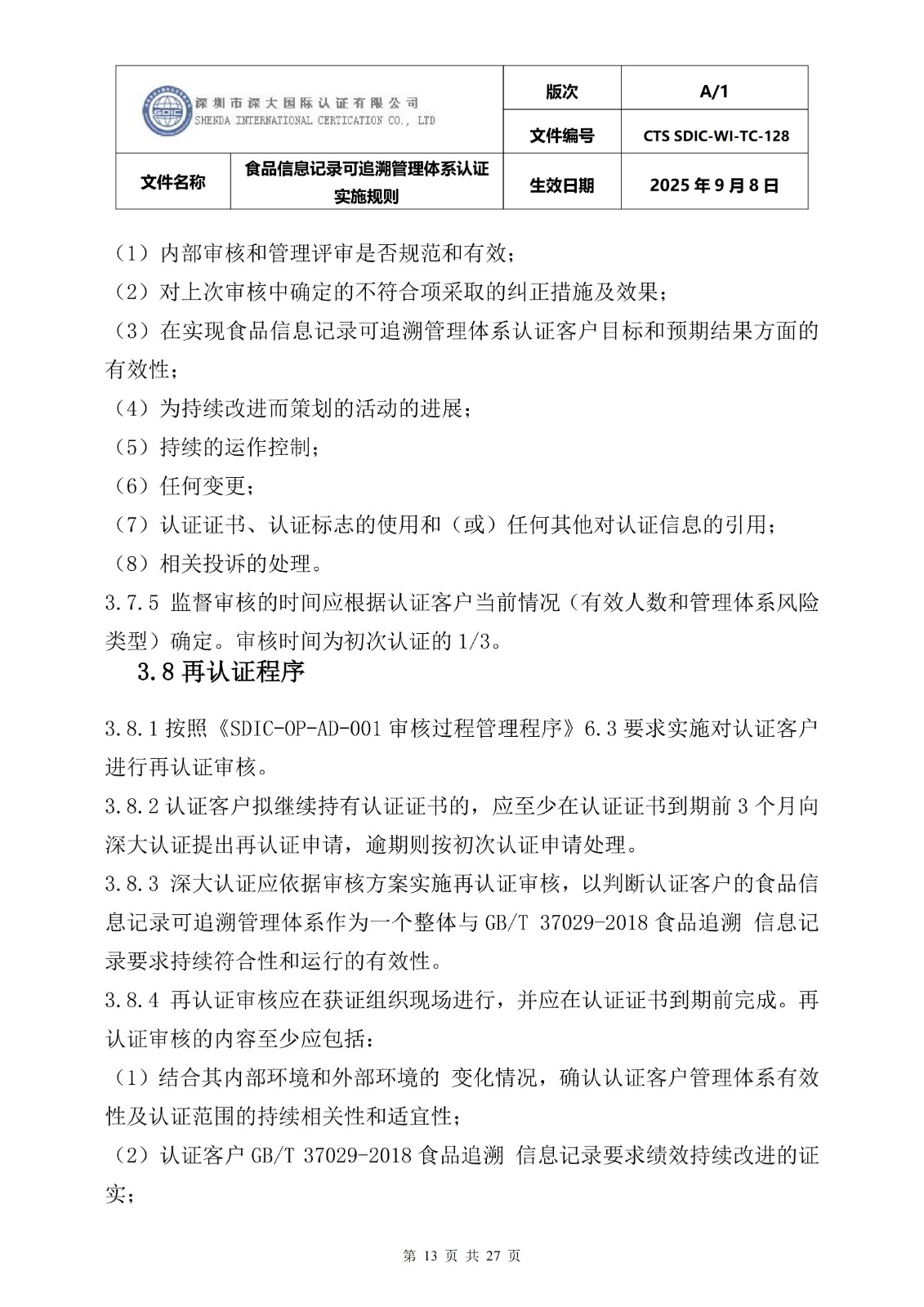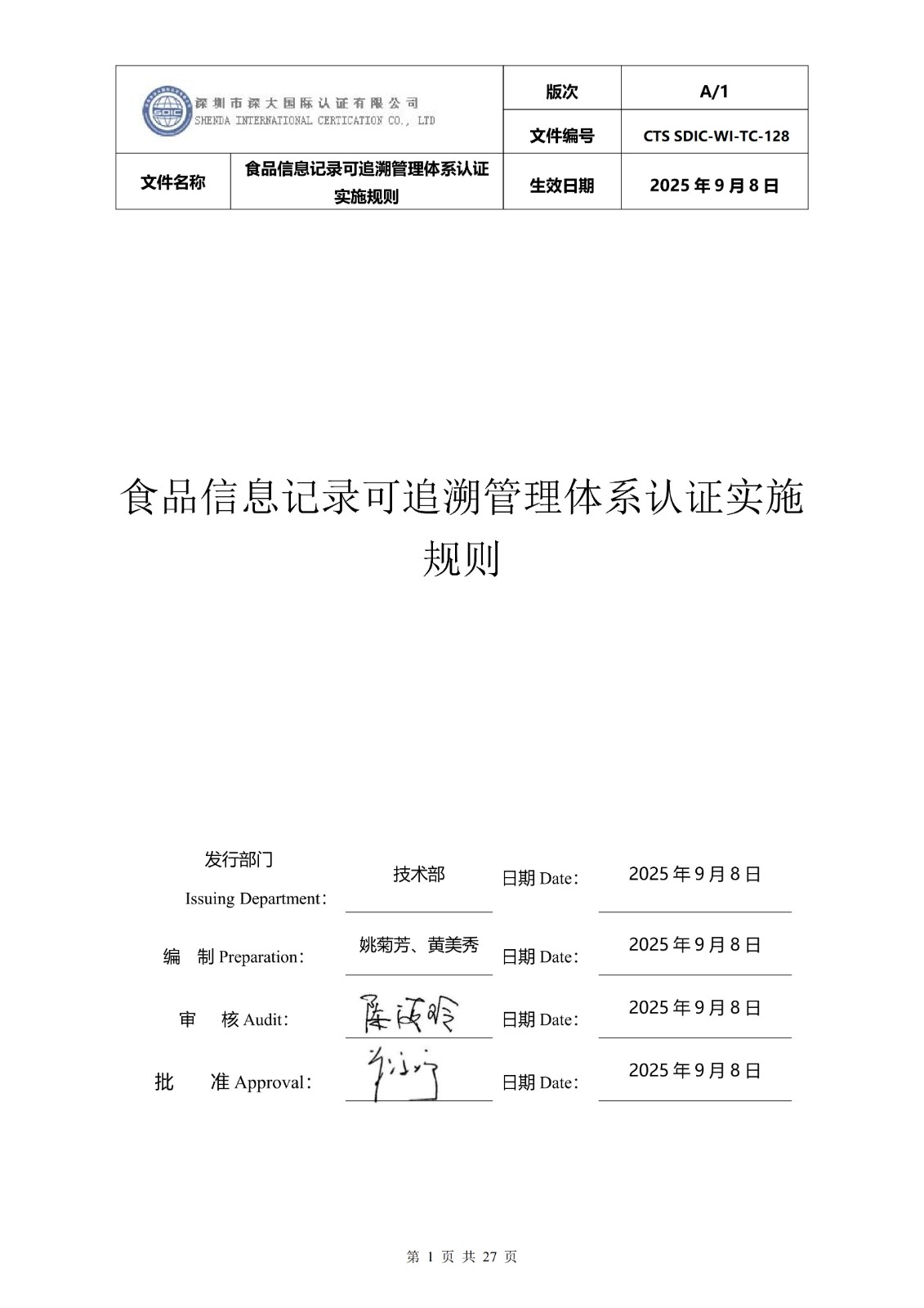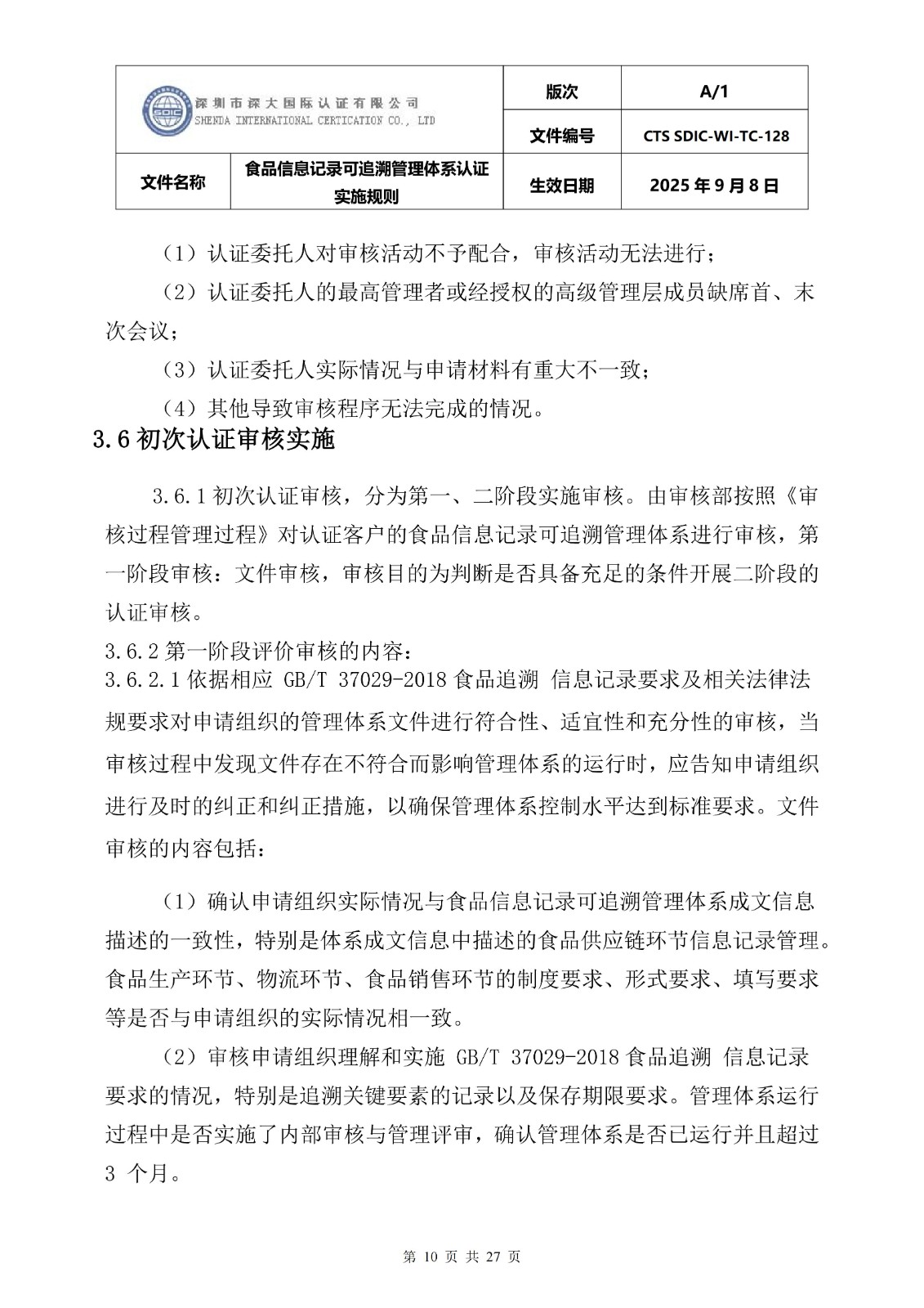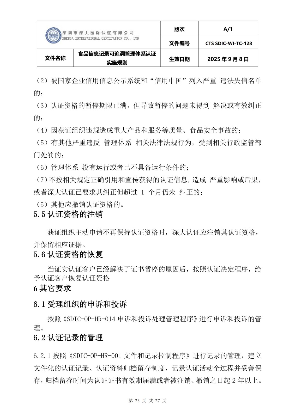 食品信息记录可追溯管理体系认证实施 规则