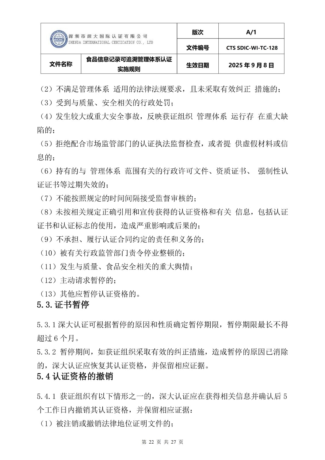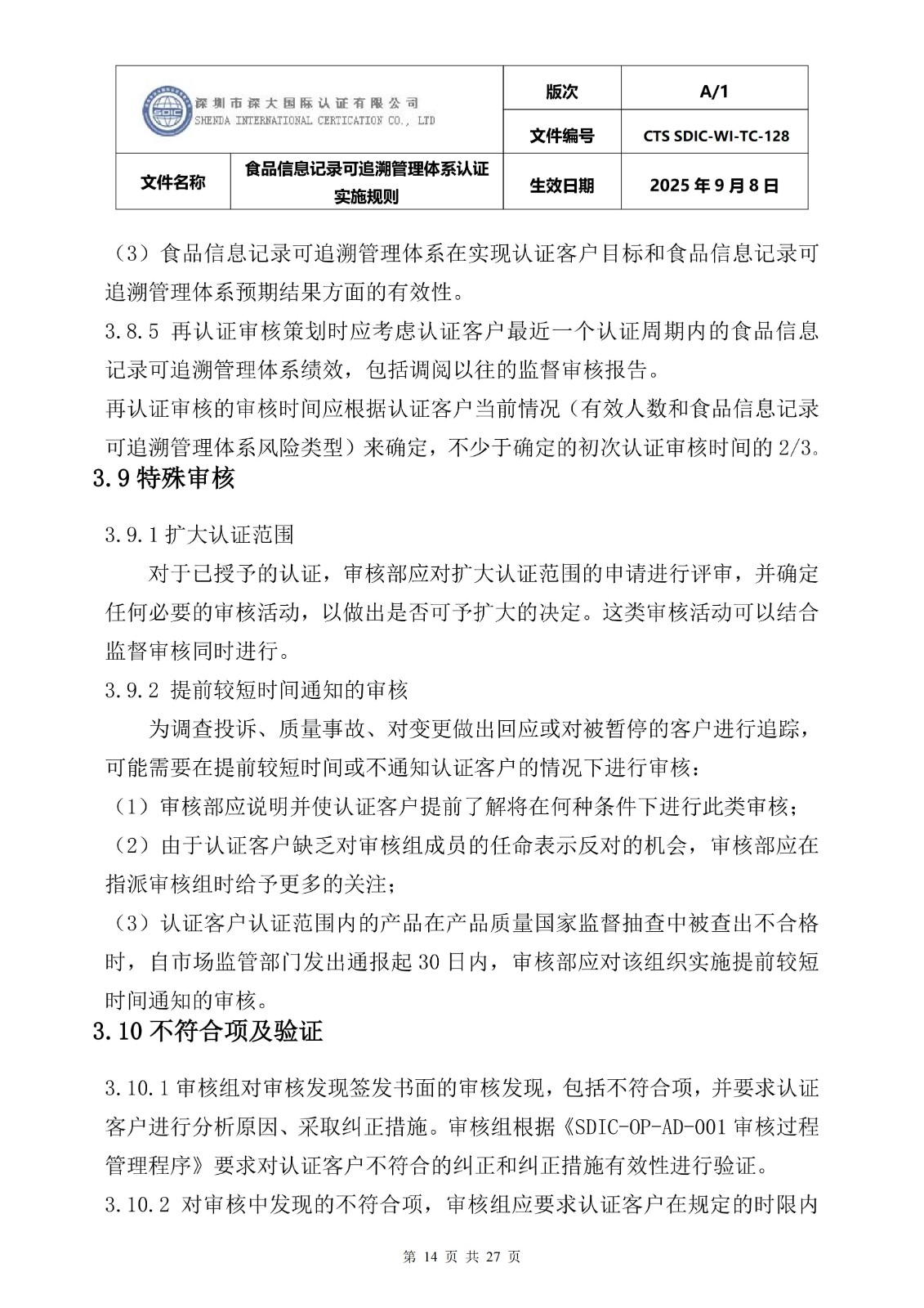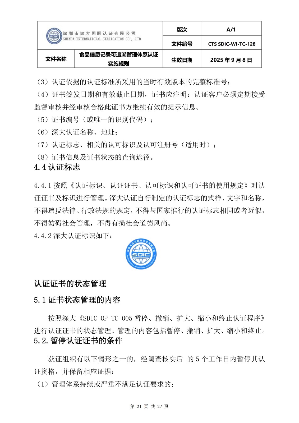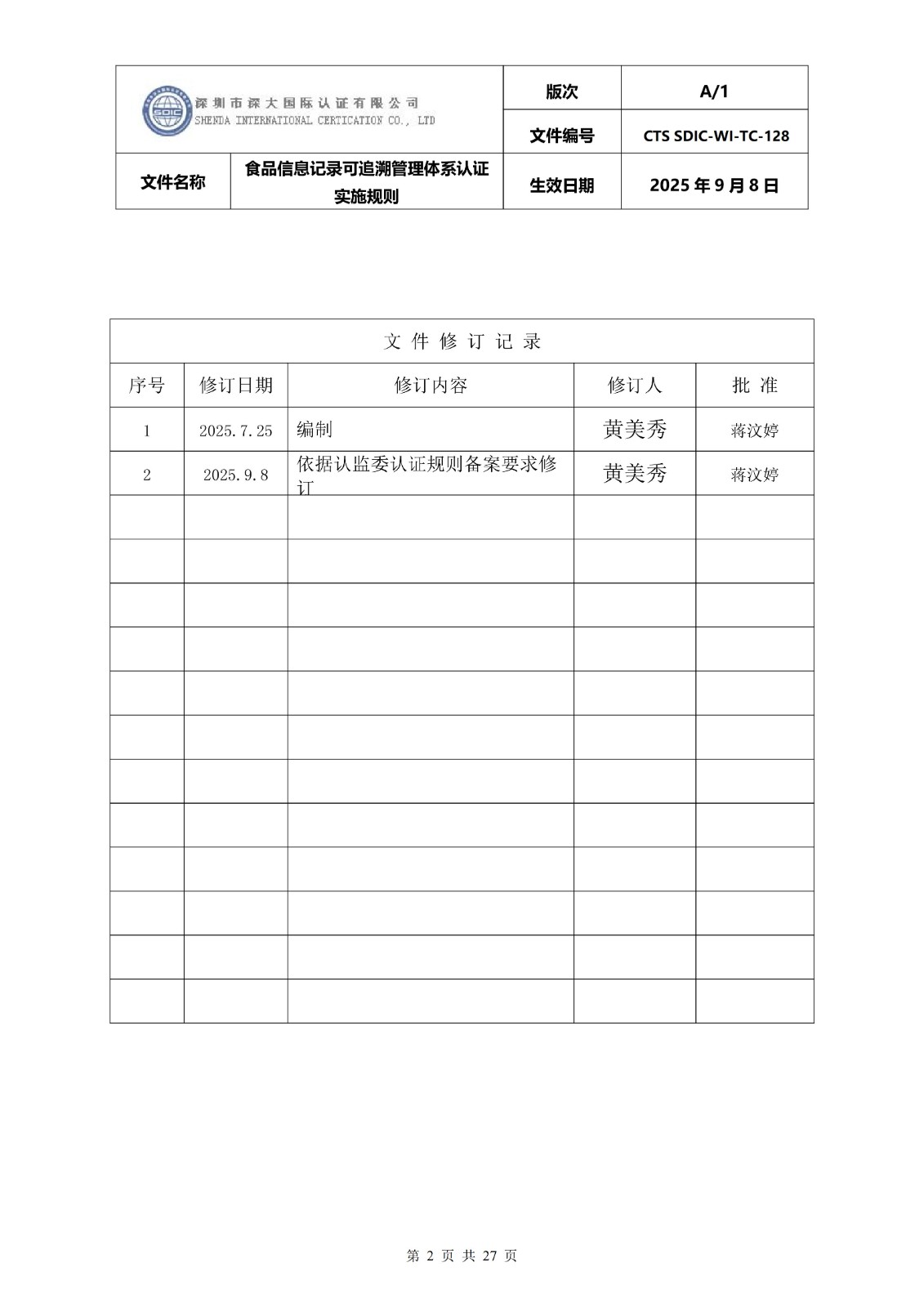 食品信息记录可追溯管理体系认证实施 规则