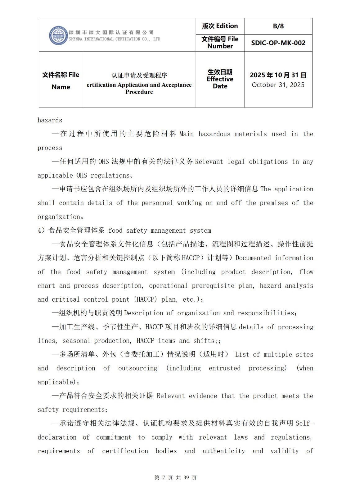 食品安全管理体系