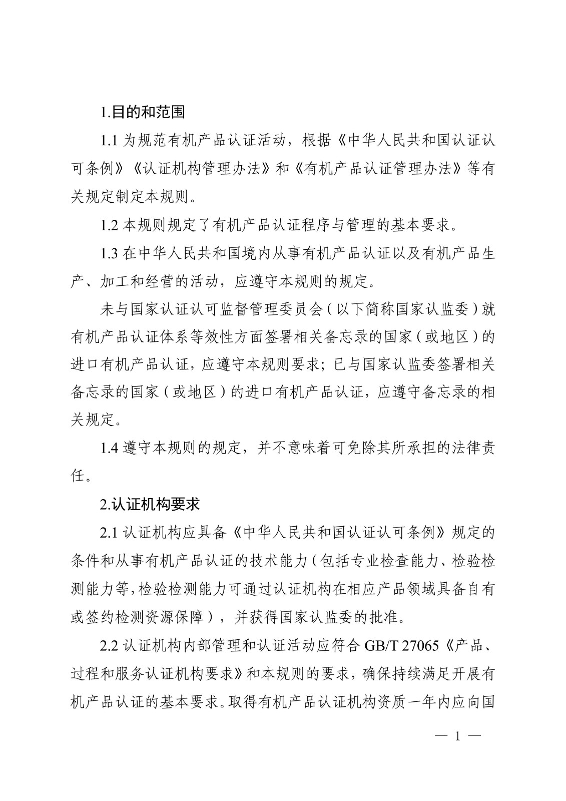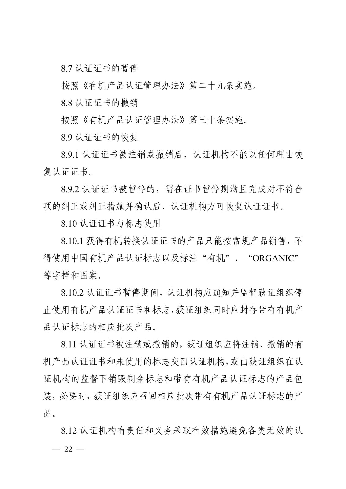 有机产品认证实施规则