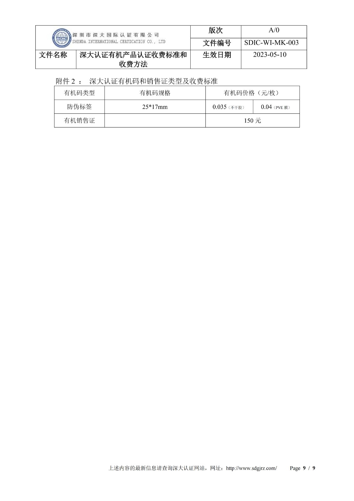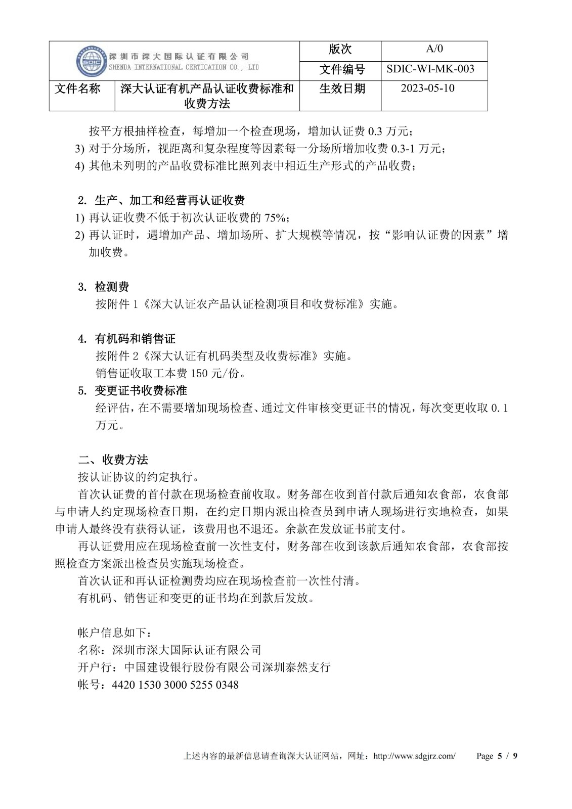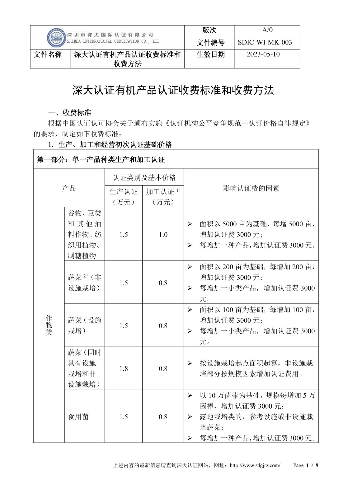 深大认证有机产品认证收费标准和收费方法