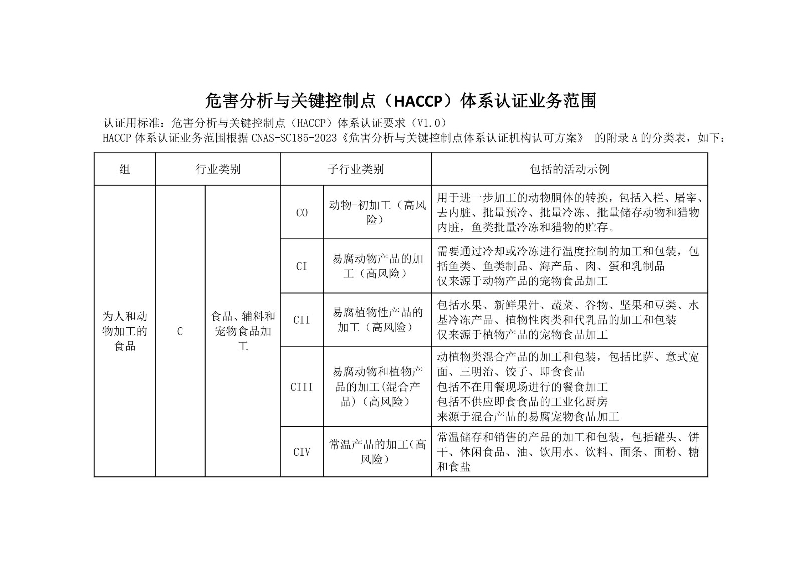 危害分析与关键控制点(HACCP)体系认证业务范围